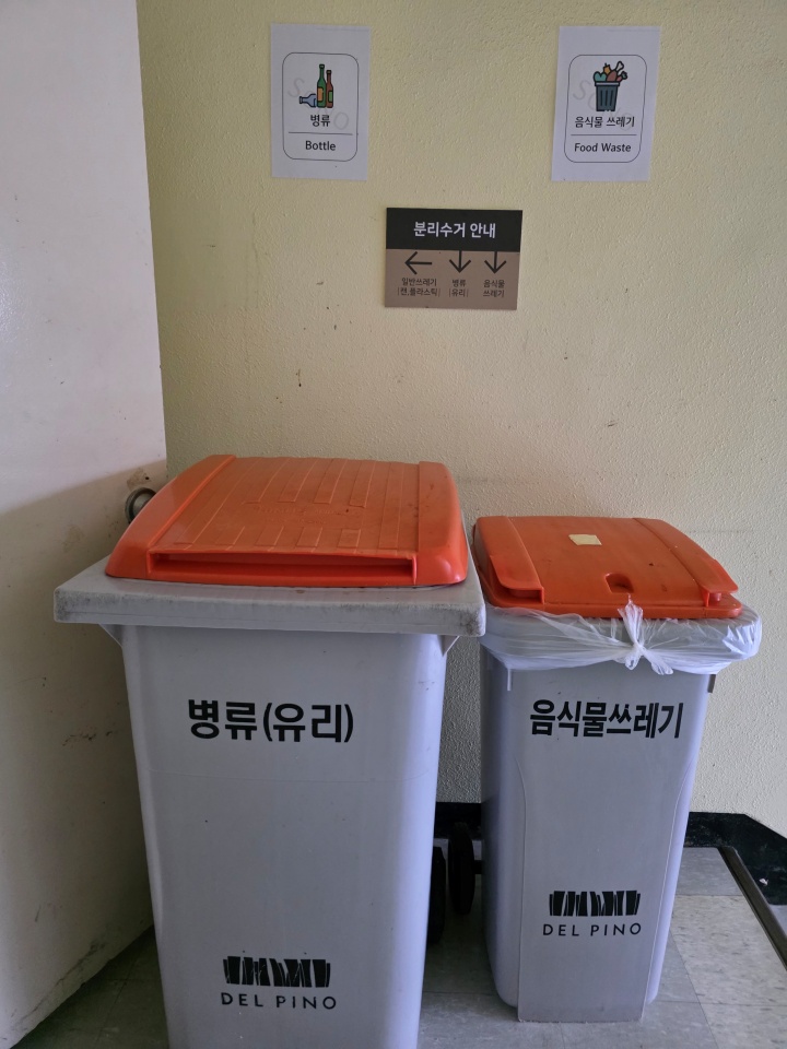 음식물쓰레기, 일반쓰레기, 병류 따로 구분하여 버립니다.